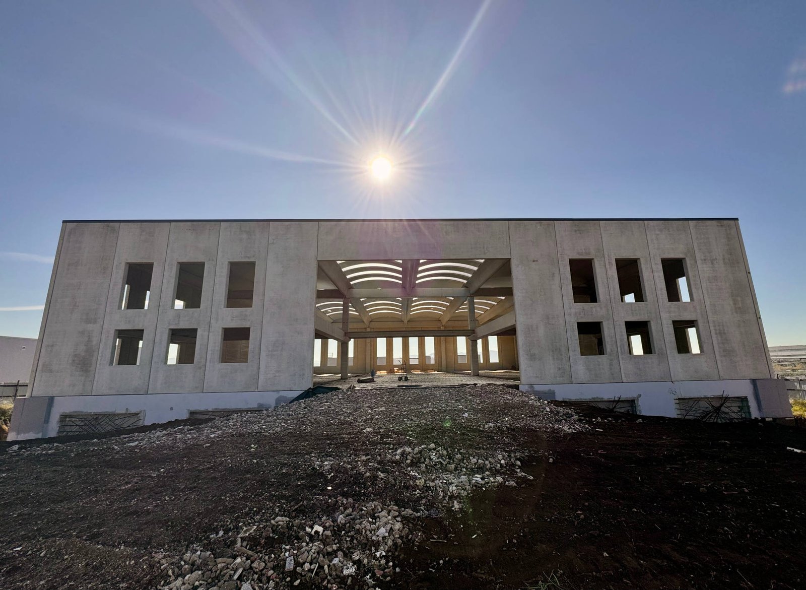 Il progetto strutturale ha previsto un’analisi dinamica modale elastica delle strutture con spettro di risposta personalizzato per il sito, applicando il fattore di comportamento previsto per la classe di uso III (industriale-terziario). La struttura in cemento armato prefabbricato si compone di 16 pilastri rastremati e travi di diversa tipologia, con solai realizzati in laterocemento e calcestruzzo armato precompresso (c.a.p.). Le fondazioni sono state realizzate con plinti diretti collegati da travi perimetrali, progettate secondo le NTC 2018. Il collaudo statico ha verificato la completezza e la correttezza di tutta la documentazione prevista tanto in fase progettuale quanto di realizzazione, nonché la corrispondenza delle opere rispetto al progetto autorizzato. Per l’impianto elettrico è stata prevista anche l’installazione di un sistema fotovoltaico per la produzione di energia pulita, integrato nel fabbricato.