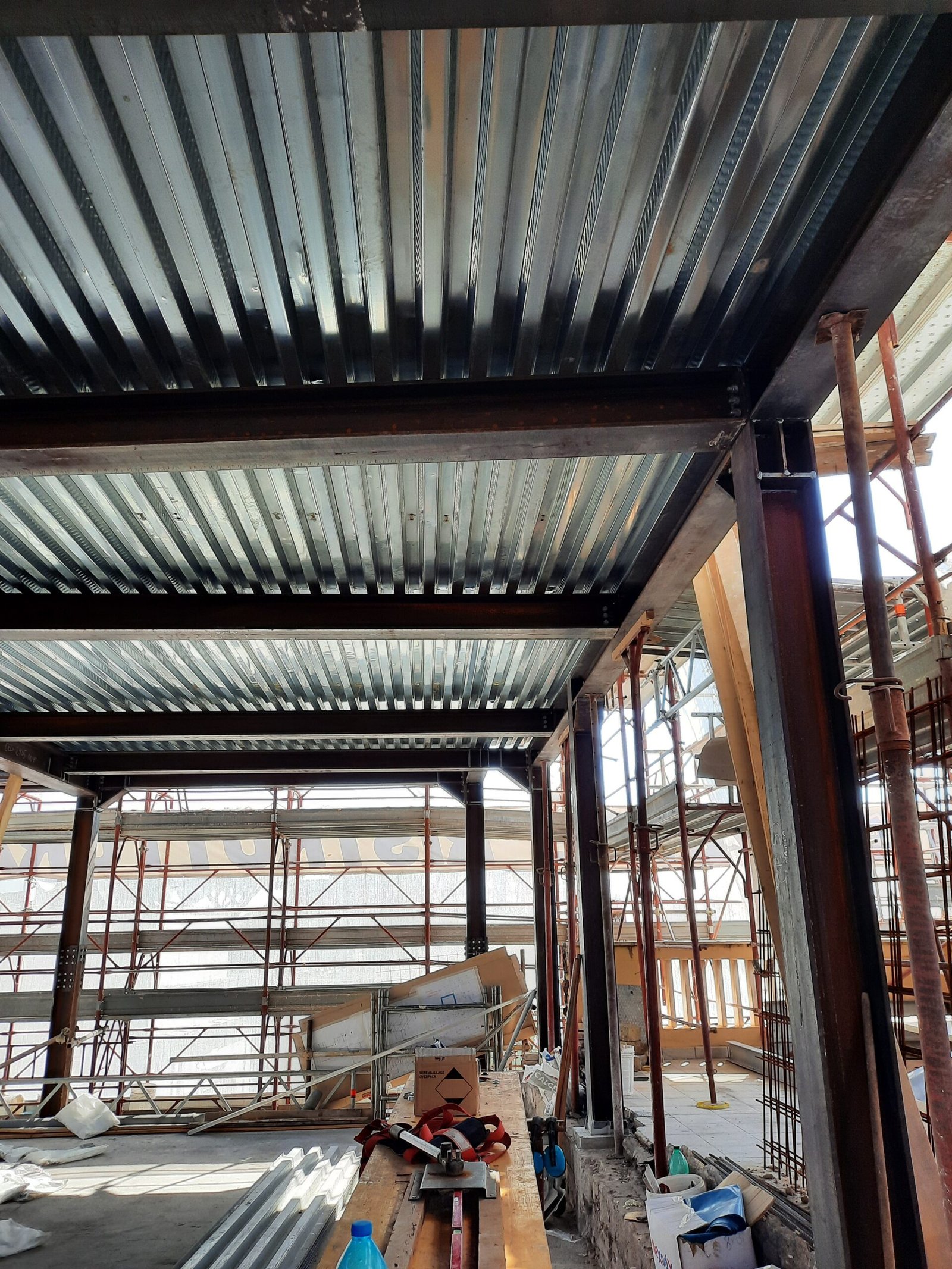 Per raggiungere gli obiettivi descritti è stato necessario adoperare un miglioramento sismico dell’intero edificio ai sensi delle NTC 2018, attraverso un insieme di soluzioni tecniche specifiche per le diverse tipologie costruttive presenti, nel rispetto delle normative vigenti e del valore storico. L’ultimo piano, realizzato su muratura in mattoni forati, non idonei a sorreggere carichi importanti, è stato completamente demolito e ricostruito in carpenteria metallica, garantendo i necessari requisiti di sicurezza per la realizzazione di una piscina panoramica in copertura. Sempre mediante l’utilizzo di carpenteria metallica, sono stati aggiunti numerosi balconi in tutti i piani del fabbricato, nonché un ascensore interno privo di barriere architettoniche. Numerosi sono stati gli interventi di consolidamento sulle murature portanti, sulle strutture in cemento armato e sui solai, sia in latero cemento che putrelle e tavelloni. Per via della complessità delle diverse tipologie strutturali preesistenti, si è resa necessaria una sorveglianza costante in cantiere e durante la direzione lavori sono state emesse 9 varianti al progetto originale, per rispondere tempestivamente a tutte le diverse problematiche sorte durante la realizzazione.