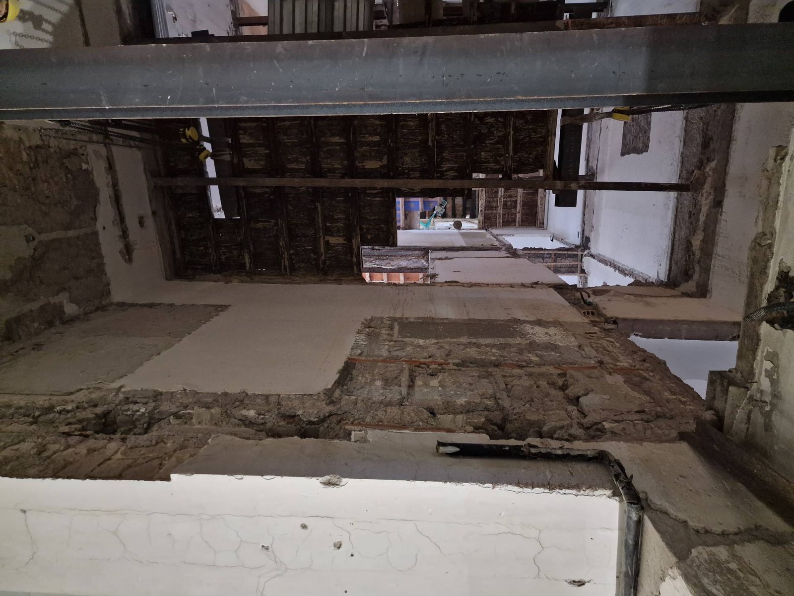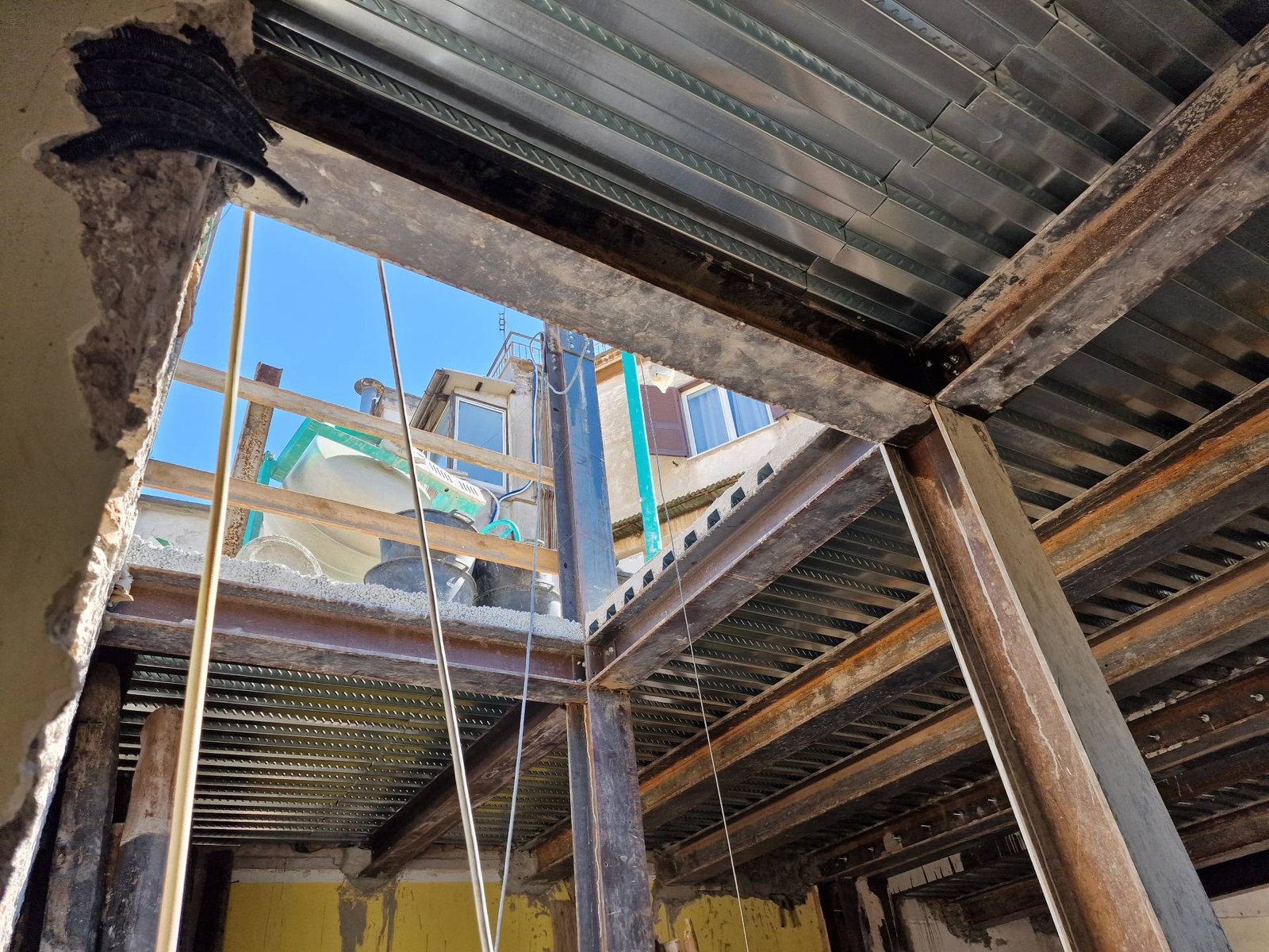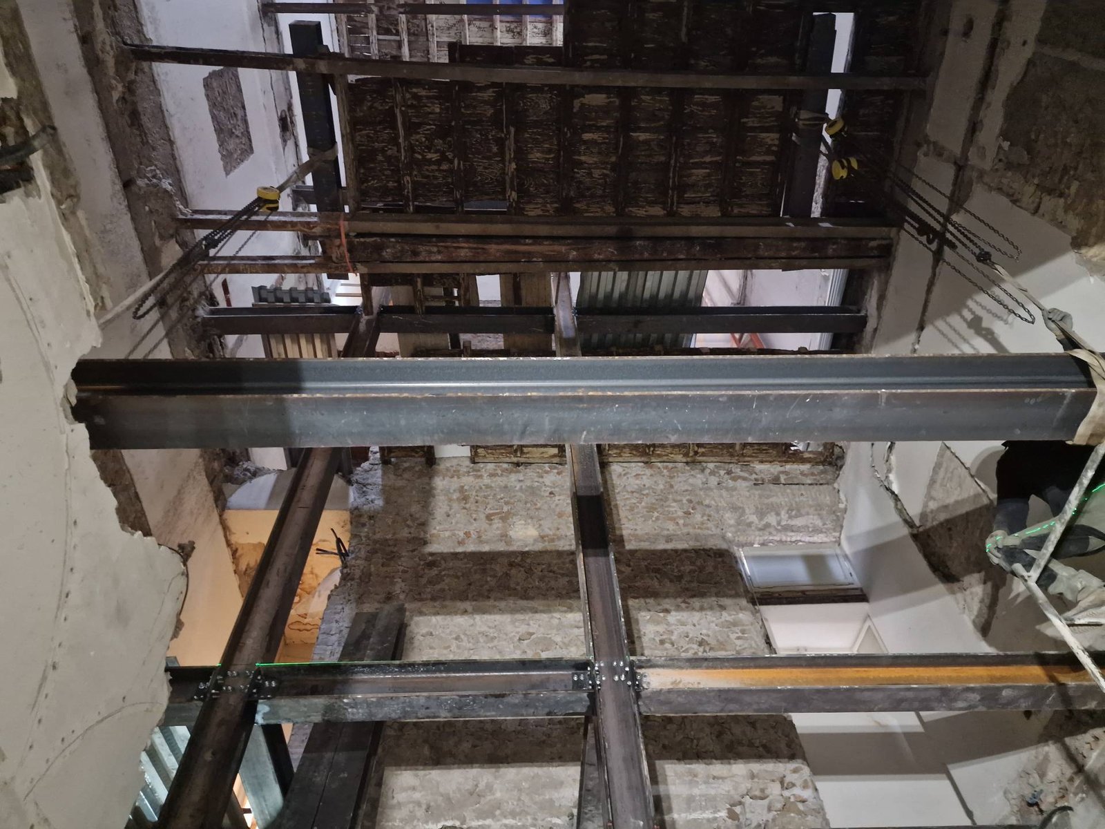 I lavori hanno comportato la demolizione controllata dei sei piani di solai in legno, fortemente deteriorati, sostituiti con una nuova struttura in acciaio, migliorando significativamente la sicurezza dell’immobile. Tale operazione è stata resa particolarmente complessa dalla necessità di movimentare carpenteria metallica di grandi dimensioni all’interno di spazi estremamente ristretti senza arrecare danno agli elementi di pregio del fabbricato.