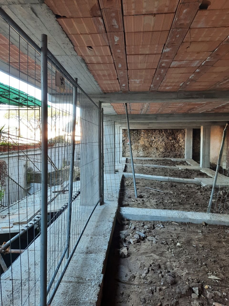 Il progetto ha previsto la realizzazione di una palificata in cemento armato per la stabilizzazione del pendio. In luogo di un semplice reinterro, è stata realizzata una struttura in cemento armato costituita da travi e pilastri, costruita in aderenza al fabbricato esistente. Il volume è stato sigillato (tombato), con la possibilità di essere utilizzato in futuro come cantine o locali tecnici.